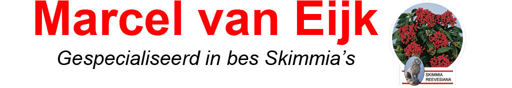 Boomkwekerij Marcel van Eijk is gevestigd in Greenport Boskoop. De kwekerij ter grootte van 1 hectare is sinds 1990 volledig gespecialiseerd in de teelt van bes Skimmia´s. Het gaat hierbij met name om de Skimmia Reevesiana in potmaat 15 cm. Deze Skimmia is bestemd voor de tuin en/of huiskamer.